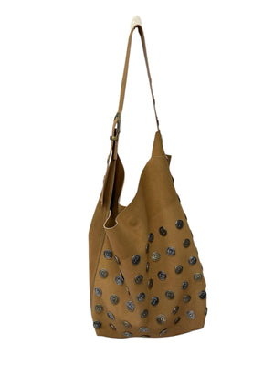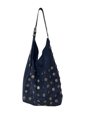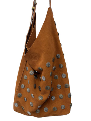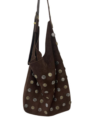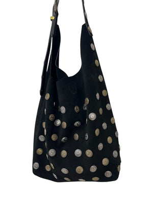 A bolsa saco com medalha é uma peça prática e estilosa, com formato amplo e confortável. A medalha metálica adiciona um toque de charme e sofisticação, perfeita para um visual casual e descomplicado.