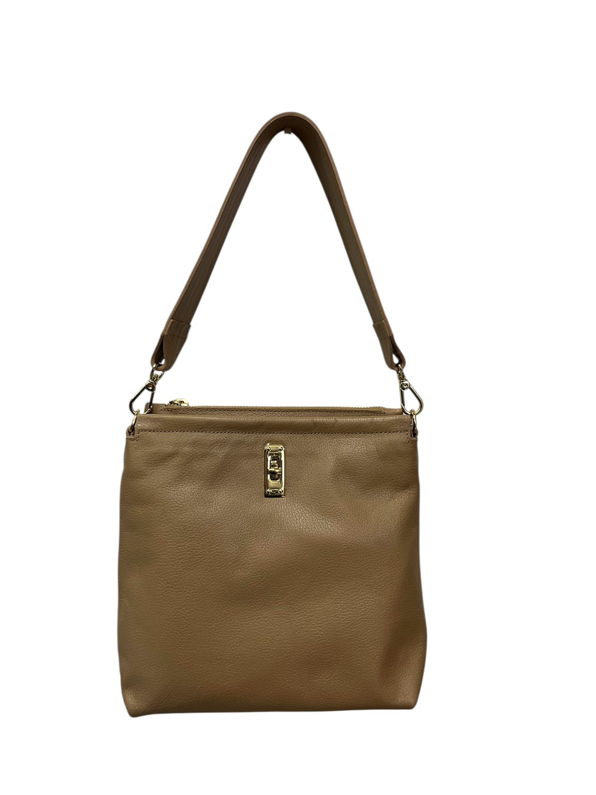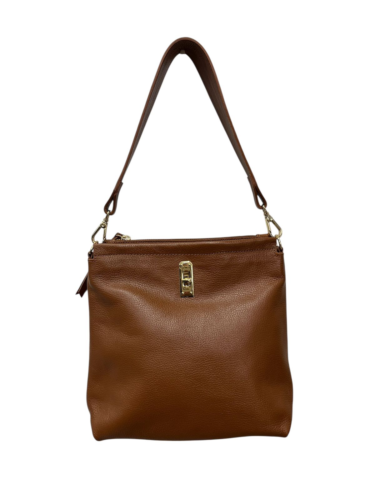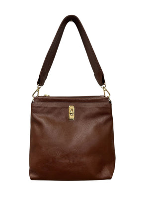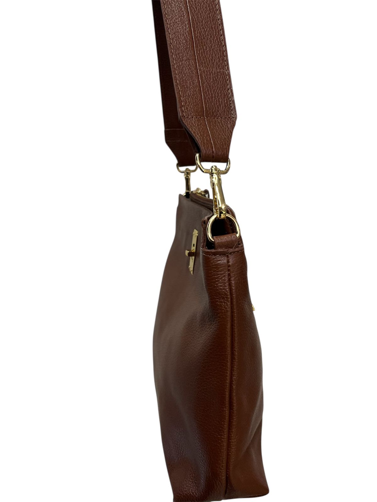 Bolsa de couro legítimo tamanho médio, com duas opções de alças e 2 divisórias internas para mais praticidade e organização no dia a dia.
