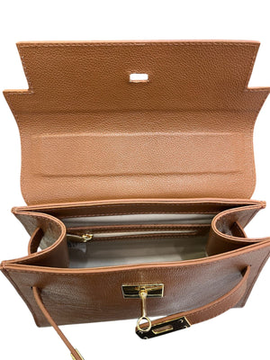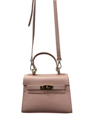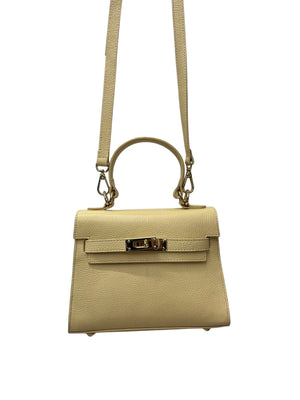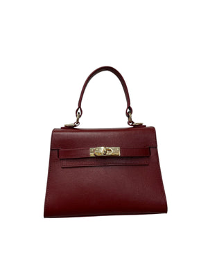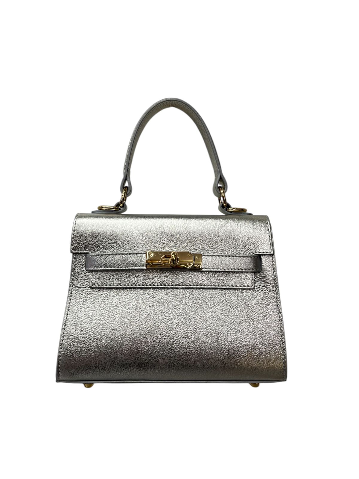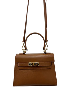 Bolsa pequena de couro com alça transversal e de mão, detalhe no fecho. Versátil, elegante e prática, ideal para o dia a dia ou eventos, com design sofisticado e material durável