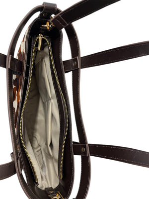 Com estampa moderna de vaquinha e detalhes em couro liso, essa bolsa une estilo e sofisticação. Possui alça de ombro e alça transversal ajustável, oferecendo versatilidade no uso. O fechamento com zíper garante segurança. Ideal para quem busca praticidade, personalidade e um toque fashion no dia a dia.