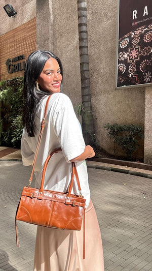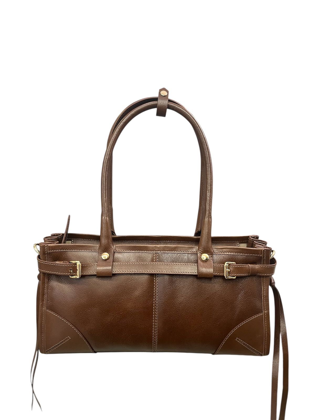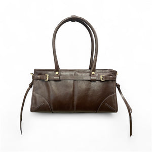 Bolsa média em couro legítimo, com duas opções de alças e detalhe elegante na fivela. Sofisticação e praticidade em uma peça versátil.