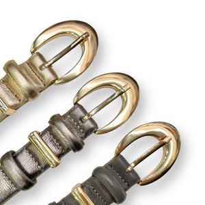 Cinto de couro legítimo com design refinado, apresentando uma fivela dourada de formato exclusivo, que se destaca pela sofisticação. O passante, também em couro, é enriquecido com um delicado detalhe dourado, criando uma harmonia visual que une elegância e modernidade. Este cinto é perfeito para elevar qualquer look, seja formal ou casual, com um toque de estilo e bom gosto. Durável e confortável, é a escolha ideal para quem busca um acessório de alta qualidade.
