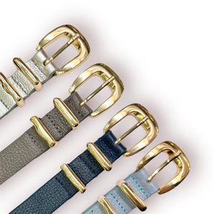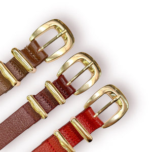 Cinto de couro legítimo com design sofisticado, realçado por uma fivela dourada polida e passantes dourados que adicionam um toque de luxo e elegância. O contraste entre o couro de alta qualidade e os detalhes metálicos cria uma peça versátil, perfeita para elevar tanto looks casuais quanto formais. Este cinto combina estilo e durabilidade, sendo um acessório indispensável para quem aprecia acabamento impecável e design refinado.