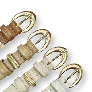 Cinto de couro legítimo com design refinado, apresentando uma fivela dourada de formato exclusivo, que se destaca pela sofisticação. O passante, também em couro, é enriquecido com um delicado detalhe dourado, criando uma harmonia visual que une elegância e modernidade. Este cinto é perfeito para elevar qualquer look, seja formal ou casual, com um toque de estilo e bom gosto. Durável e confortável, é a escolha ideal para quem busca um acessório de alta qualidade.