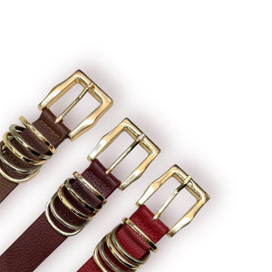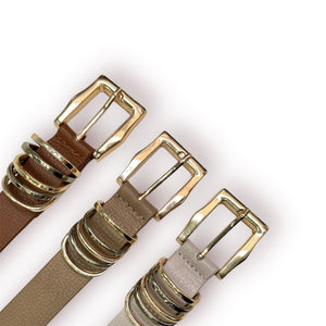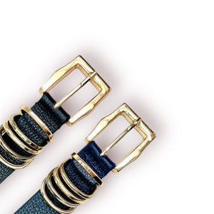 Cinto de couro com acabamento impecável, que destaca uma fivela dourada elegante. O diferencial está nos passantes em dourado e prata, criando um contraste sofisticado e moderno. Ideal para quem busca um acessório versátil, que combina com diferentes estilos e ocasiões, adicionando um toque de refinamento ao visual.