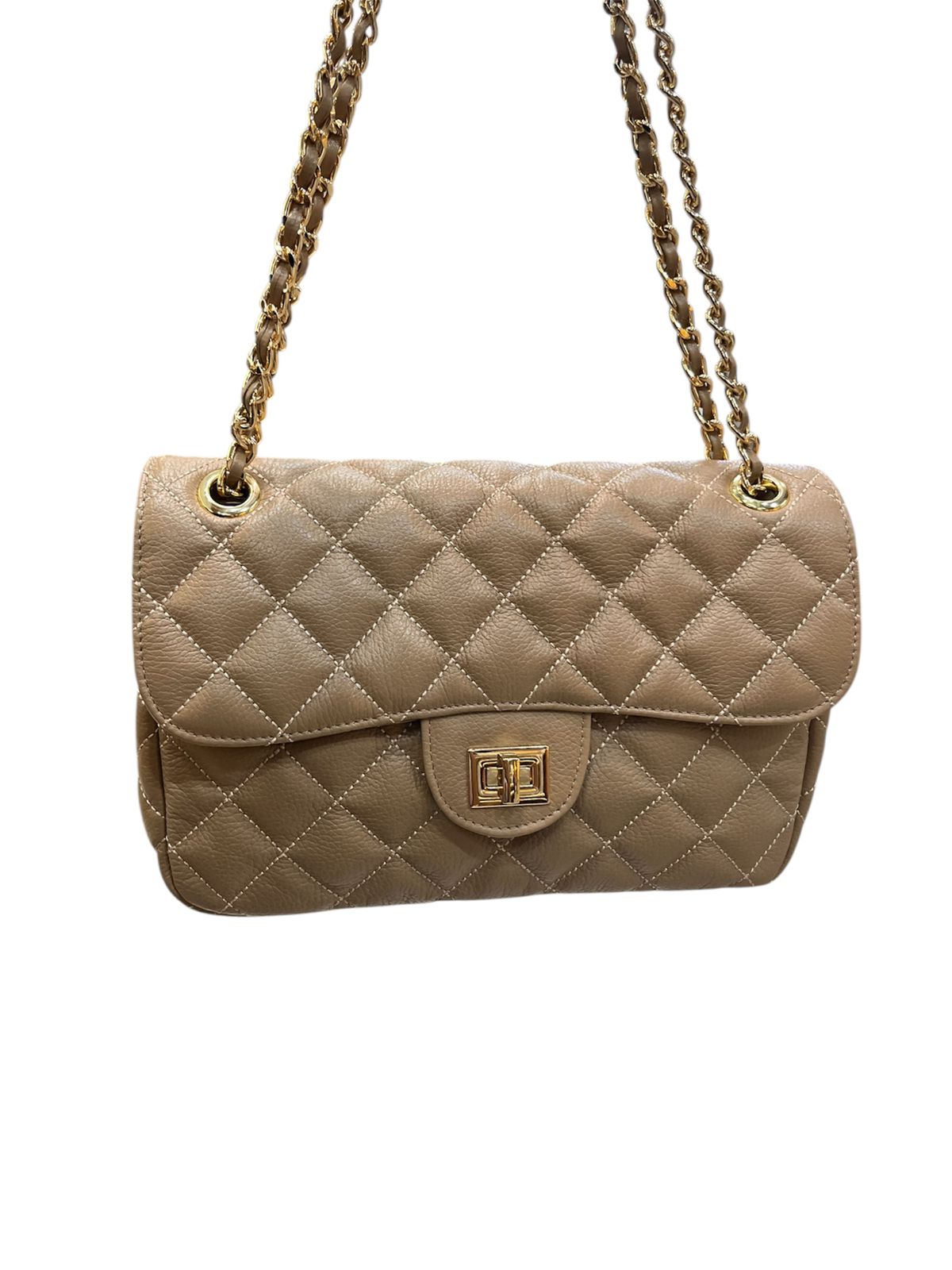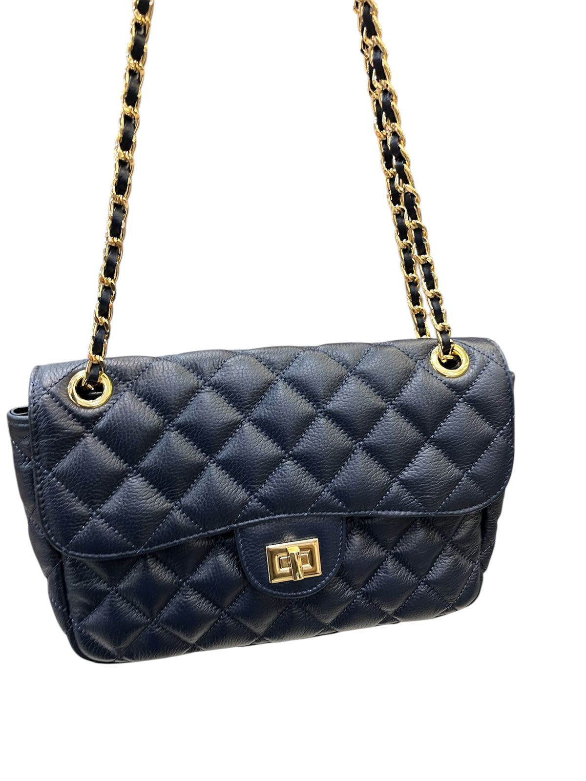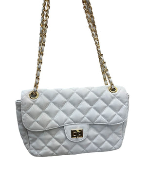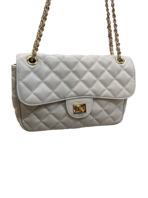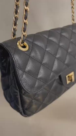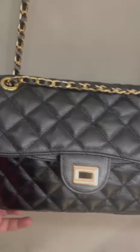Bolsa média em couro legítimo com design em matelassê, inspirada no clássico estilo Chanel. Com uma alça de corrente elegante, que pode ser usada tanto no ombro quanto de forma transversal, esta peça combina sofisticação e praticidade. Ideal para quem busca um acessório atemporal que complementa qualquer look com um toque de luxo.
