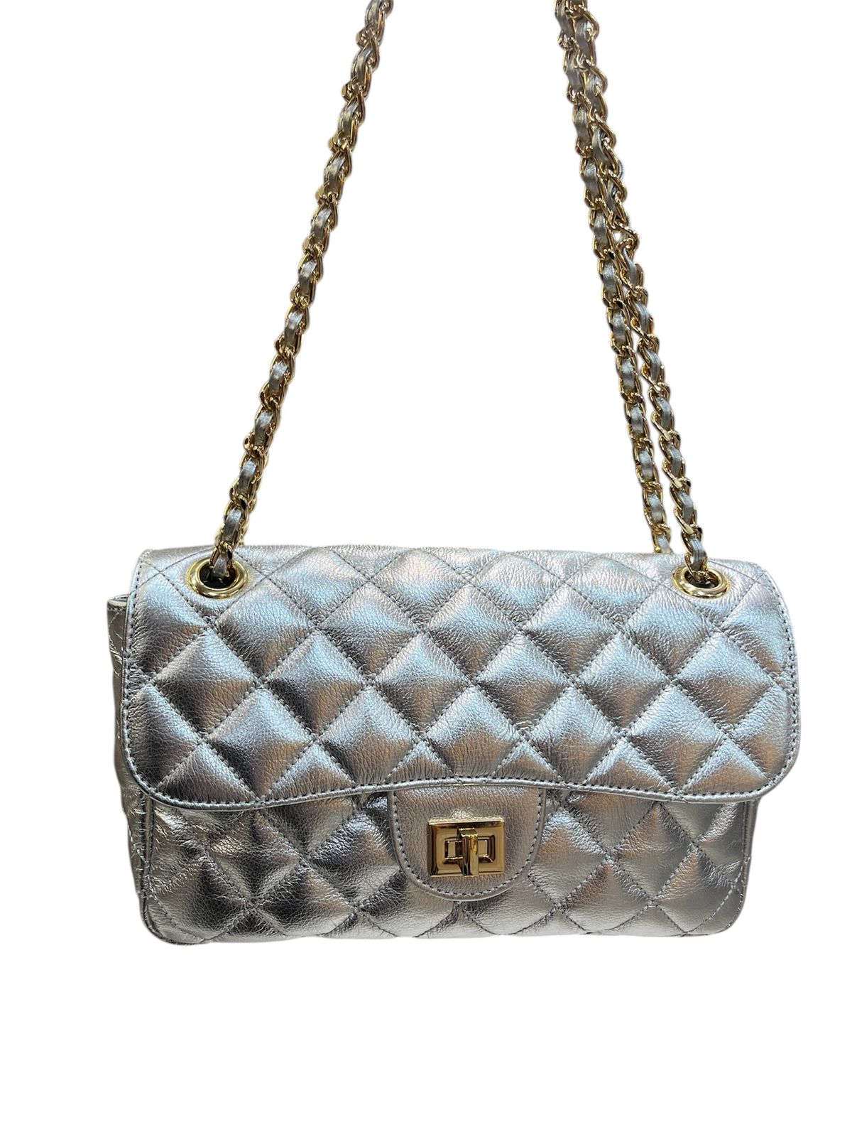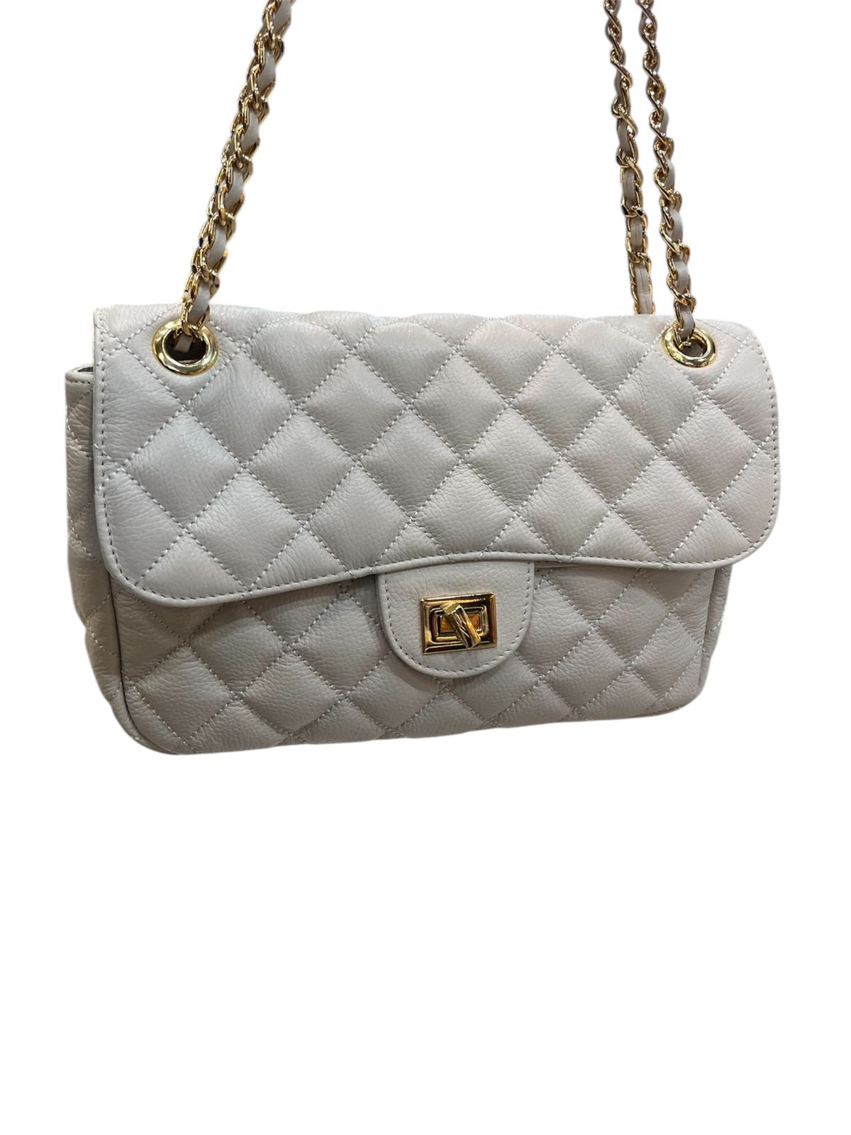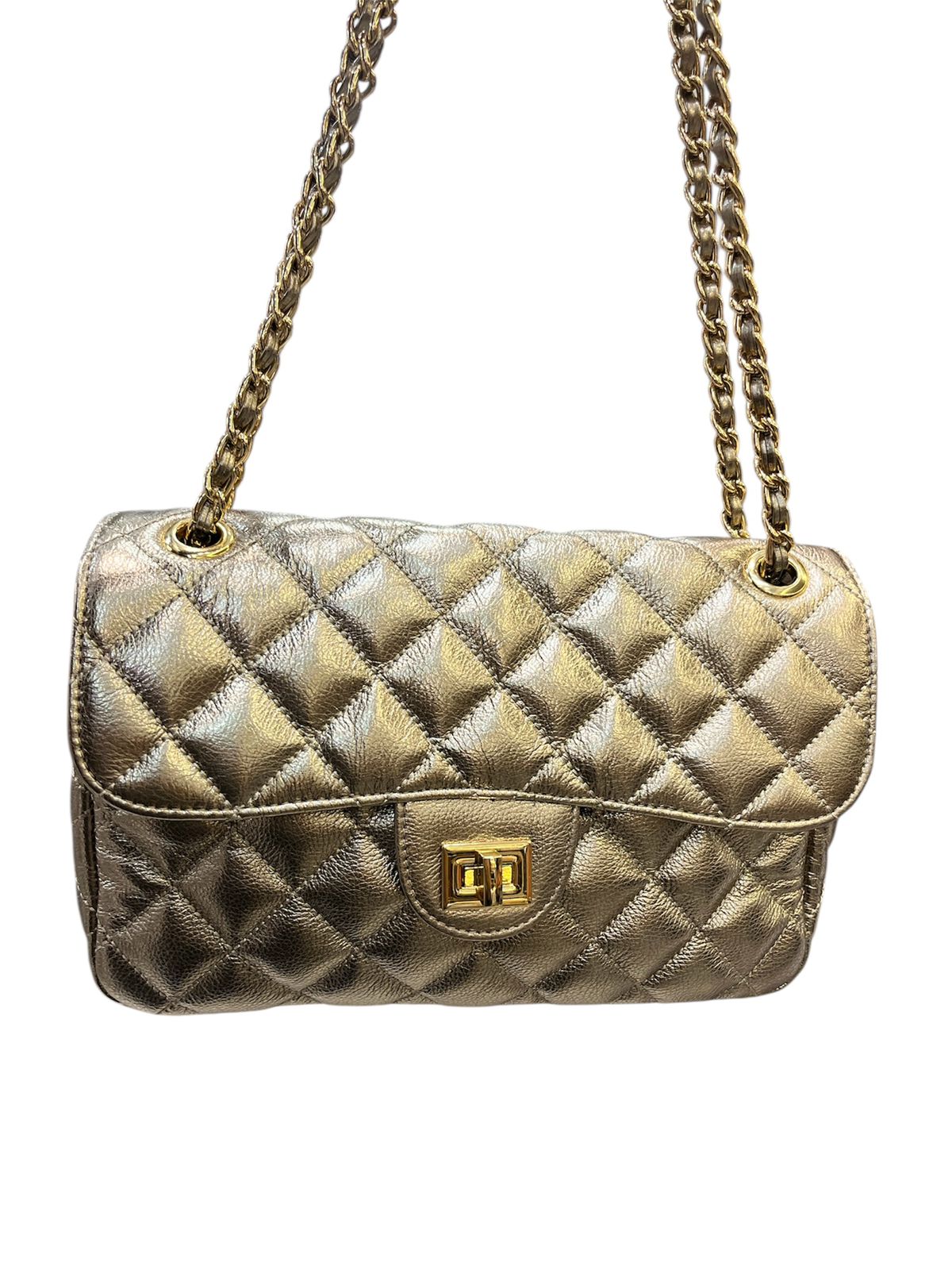 Bolsa média em couro legítimo com design em matelassê, inspirada no clássico estilo Chanel. Com uma alça de corrente elegante, que pode ser usada tanto no ombro quanto de forma transversal, esta peça combina sofisticação e praticidade. Ideal para quem busca um acessório atemporal que complementa qualquer look com um toque de luxo.