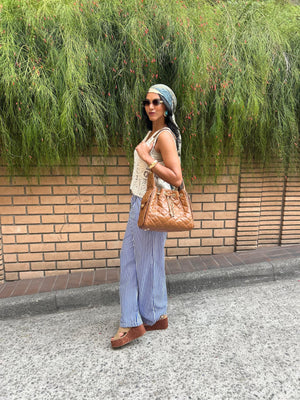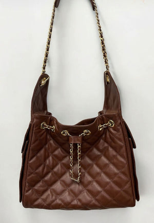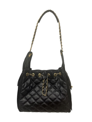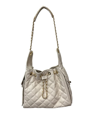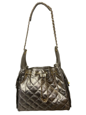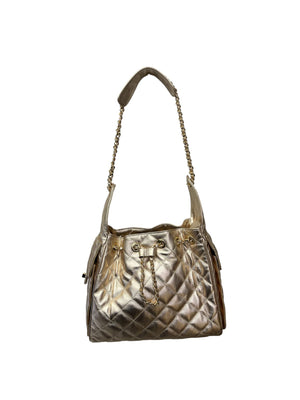 Bolsa média em Metalassê, fecho de regulagem e detalhes nas alças.