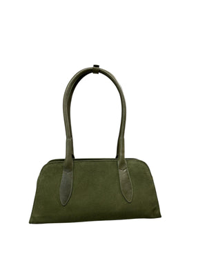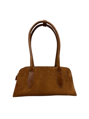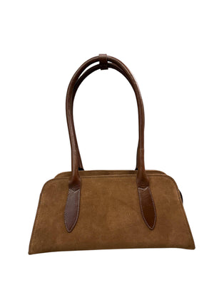 Bolsa média de camurça com 3 divisórias, prática, elegante e com toque macio para o dia a dia.