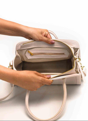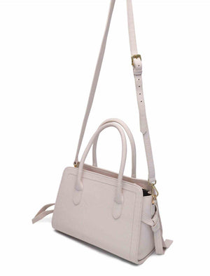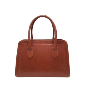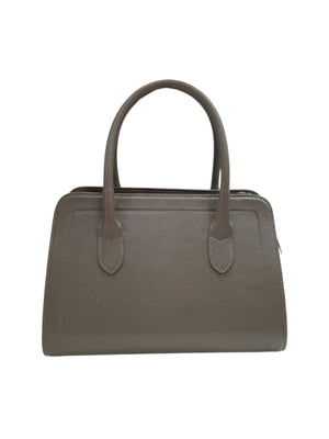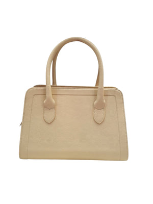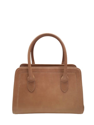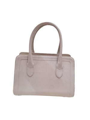 Bolsa de couro, tamanho médio , estruturada , com alça de mão e alça transversal.